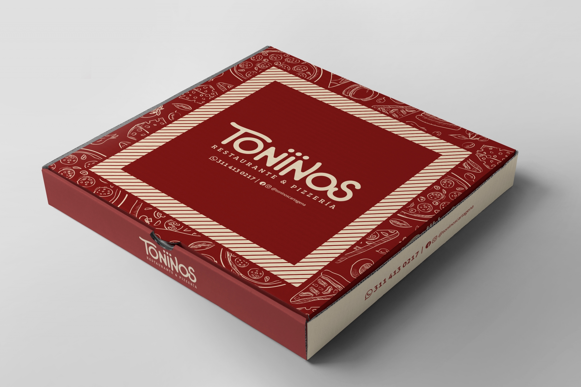 Cliente: Toninos Restaurante & PizzeríaTipo de servicio: Diseño gráficoCategoría de servicios: Diseño de empaques de productos - Diseño de empaques y etiquetas - Identidad corporativa