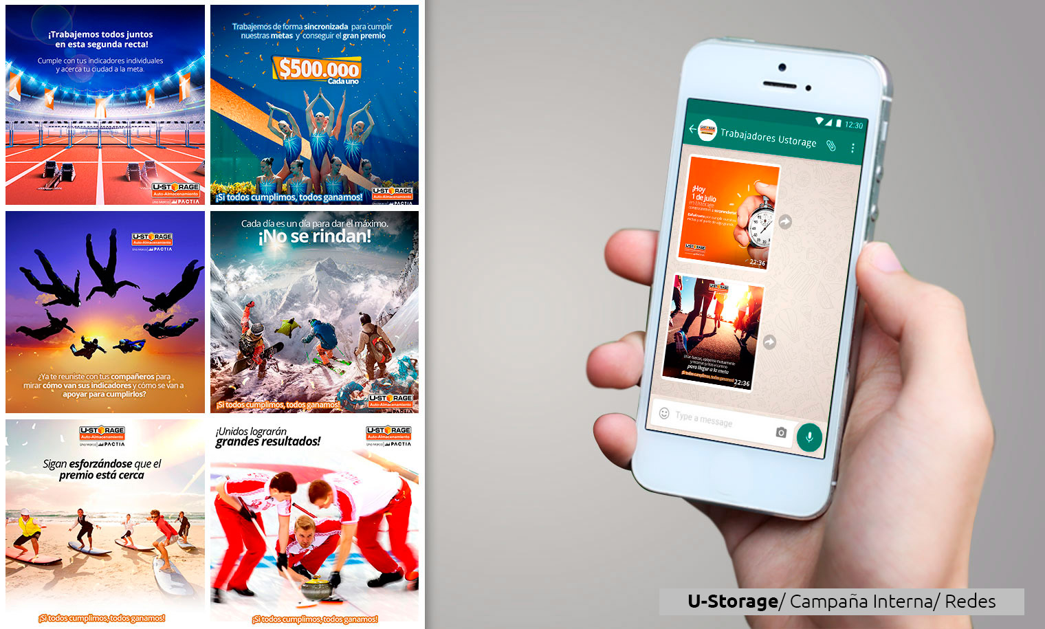 Con el fin de incentivar el trabajo en equipo para el cumplimiento de metas e indicadores de toda la organización, creamos una campaña de comunicación interna para U-Sotrage. De esta forma motivamos a todas las áreas de la empresa a cumplir las metas propuestas y a arraigar la cultura del trabajo en equipo.